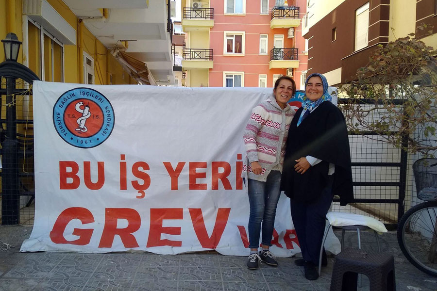 Asmalı Konak Huzurevi çalışanları, ağır çalışma koşulları ve düşük ücretler nedeniyle Sağlık-İş’te örgütlenmiş ve sendika yetki almıştı. Toplu sözleşme görüşmeleri devam ederken patronun tehditleri sonucu yaklaşık 30 işçi sendikadan istifa etmiş, bu sırada toplu sözleşme görüşmelerinde anlaşma sağlanamadığı için grev kararı alınmıştı. Alınan karar gereği, sendikadan istifa etmeyen ve huzurevinde yaklaşık 10 yıldır çalışan hasta bakıcılar Arzu Başaran ve Hatice Şener, 240 gün önce greve çıkmıştı.