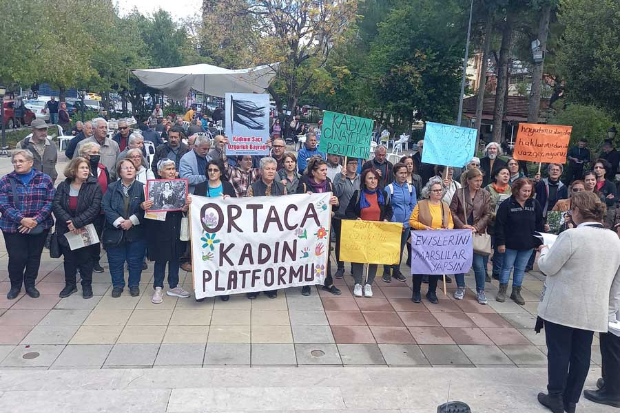 Muğla Ortaca’da Kadın Platformu Cumhuriyet Meydanı’nda basın açıklaması düzenledi. Açıklamayı platform adına Pir Sultan Abdal Kültür Derneği Başkanı Ülkü Aydoğan okudu.