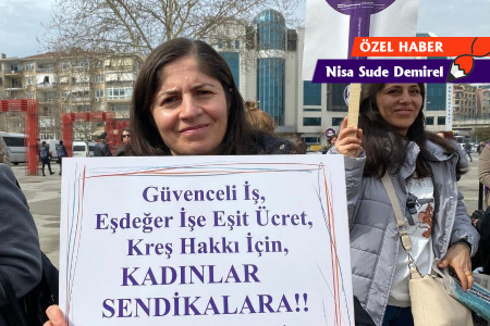 DİSK'li kadınların taleplerinden de söz eden Çerkezoğlu, "Diyorlar ki 'Kadınlar tam zamanlı çalışmak istemiyor', yetemiyorlar, 'Kadınlar yarı zamanlı, evden, daha güvencesiz ve esnek bir çalışma biçimi istiyor' diyorlar. Bu kocaman bir yalan. Kadınlar eşitlik istiyor, kadınlar çalışma hayatına eşit koşullarda katılmak istiyor. Çalışma hayatına katılmamızın önündeki en temel engel olan yaşlı bakımı, çocuk bakımı, ev işleri gibi işleri kadınların üzerinden alacak politikalar istiyor kadınlar. Bütün bu organize sanayi bölgelerinde 24 saat açık kreş olmasını istiyoruz" diye konuştu.