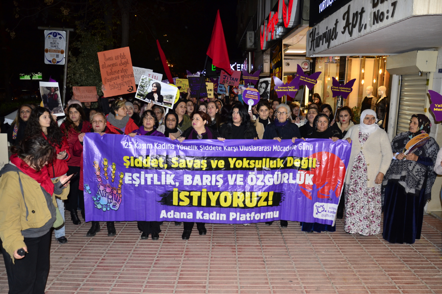 Adana Kadın Platformu’nun çağrısıyla kadınlar, artan erkek şiddetine, kadın kazanımlarına yönelik saldırılara ve uygulanmayan koruma kararlarına karşı Adana İstasyon Meydanı’ndan Atatürk Parkı’na yürüdü. Yürüyüş başladığı esnada kadınlar polis barikatı ile engellenmek istendi. Kadınlar, “Kadınlara değil, katillere barikat” sloganı ile barikata tepki gösterdi. Yapılan görüşmenin ardından barikat geri çekilince kadınlar yürüyüşe devam etti. Diyarbakır’da yasaklanan “Jin, jiyan, azadî” sloganları eşliğinde yapılan yürüyüşte kadınlar, erkek şiddeti ve baskı politikalarını protesto etti.