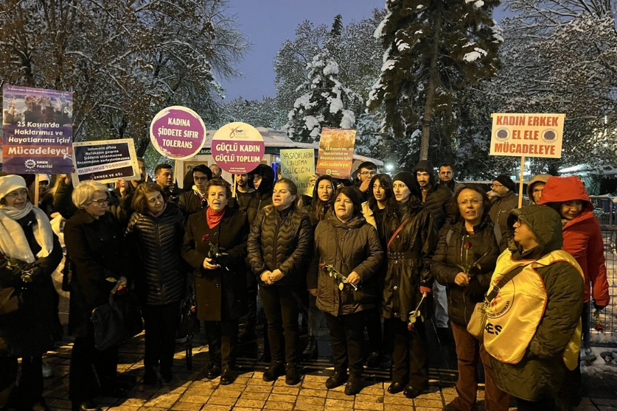 Kayser Kadın Platformu adına açıklamayı SES Kayseri Şubesi Başkanı Eyza Türker okudu. "25 Kasım'da birkez daha söylüyoruz: haklarımızdan ve hayatlarımızdan vazgeçmiyoruz" denildi.
