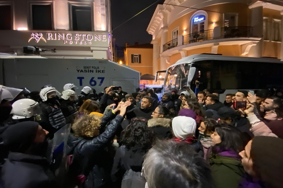 Kadınlar tüm engellemelere rağmen Karaköy İskelesi önünde toplanmaya başladı. Bir araya gelen kadınlar öldürülen kadınları andı. "Münferit değil, erkek şiddeti" sloganı atıldı. Kadınlar, "Jin Jiyan Azadi" sloganının Diyarbakır Valiliği tarafından yasaklanmasına da tepki gösterdi.