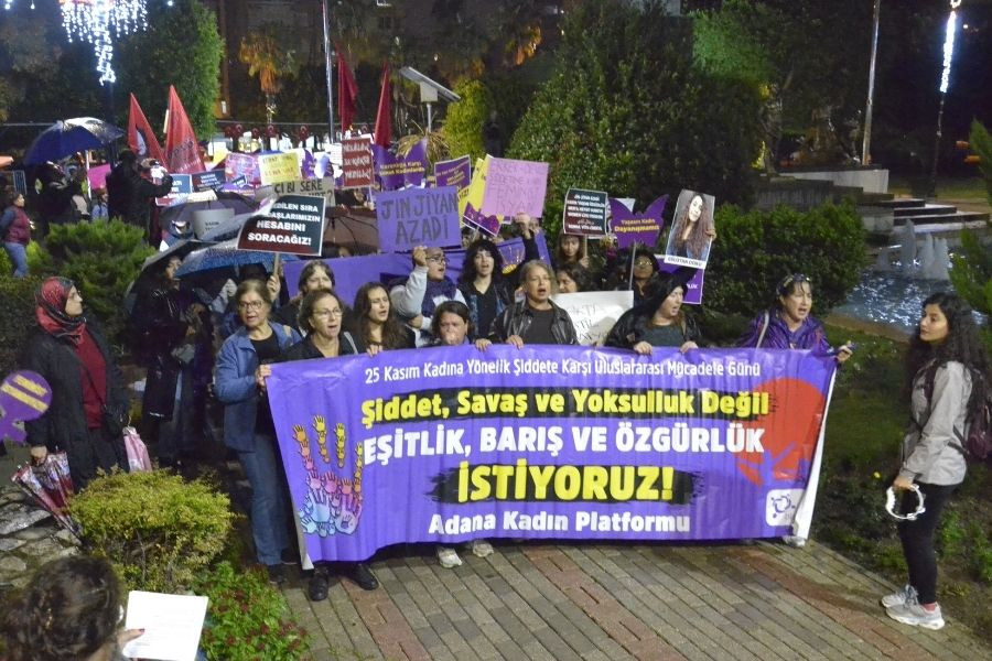 Çukurova'da kadınlar, 25 Kasım Kadına Yönelik Şiddetle Mücadele Günü’nde Atatürk Parkı’nda bir araya gelerek Uğur Mumcu Meydanı’na yürüdü.