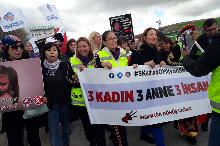 Çocuk istismarı, kadına yönelik şiddet ve doğa katliamlarına dikkat çekmek amacıyla ‘3 İnsan, 3 Kadın, 3 Anne’ sloganıyla Çanakkale’den Ankara’ya yürüyüşe geçen kadınlar Bursa’ya ulaştı.