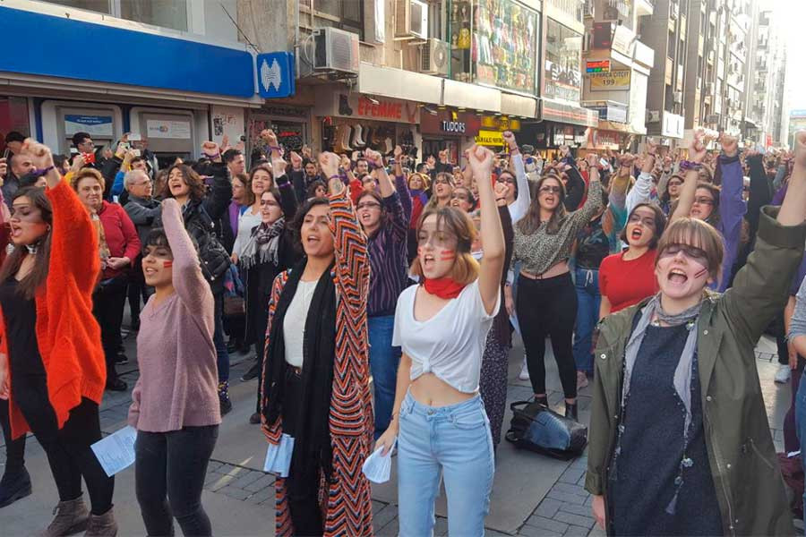 İzmir'in Alsancak ilçesinde, 15 Aralık 2019'da gerçekleştirilen Las Tesis eylemine katılan 24 kadın hakkında, Türk Ceza Kanunu 301'inci maddesi ve 2911 sayılı Toplantı ve Gösteri Yürüyüşleri Kanunu'na muhalefet suçlamasıyla açılan davanın karar duruşması görüldü. İzmir Adliyesi 7'inci Asliye Ceza Mahkemesi'nde görülen duruşmada sanık avukatları ile sanıkların bir kısmı hazır bulunurken Kadın Cinayetlerini Durduracağız Platformu, Karabağlar Kent Konseyi ile Kadın Meclisi Şiddetle Mücadele Grubu duruşmayı izledi.