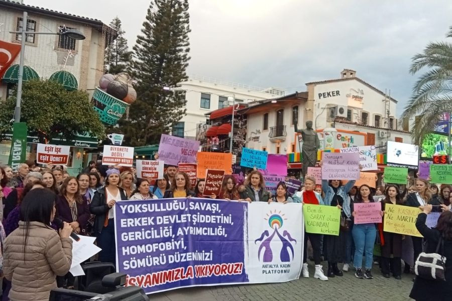Kadınlar Antalya’da “Kadınları, çocukları LGBTİ’leri koruyamayan, erkek devlet zihniyetine ve onun yasalarına karşı tüm yaşam alanlarımızda isyanımızla, mücadelemizle var olmaya devam edeceğiz” dedi.