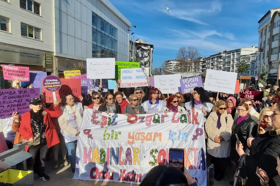 Ordu Kadın Platformu çağrısıyla kadınlar, 19 Eylül Ortaokulu'dan Sırrıpaşa Caddesi üzerinden Köprübaşı Ceren Özdemir MeydanI'na yürüdü. Yürüyüş boyunca kadınlar, “Kadın, yaşam, özgürlük”, “Susma haykır, şiddete hayır”, “Susmuyoruz, korkmuyoruz, itaat etmiyoruz”. “Yaşasın 8 mart” sloganları attı.