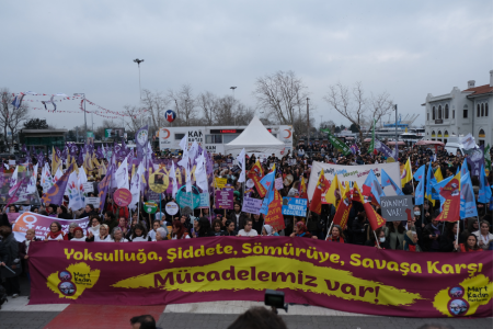 İstanbul Kadıköy'de 8 Mart Kadın Platformunun “Yoksulluğa, şiddete, sömürüye, savaşa karşı mücadelemiz var” çağrısıyla kadın buluşması gerçekleştiriliyor.