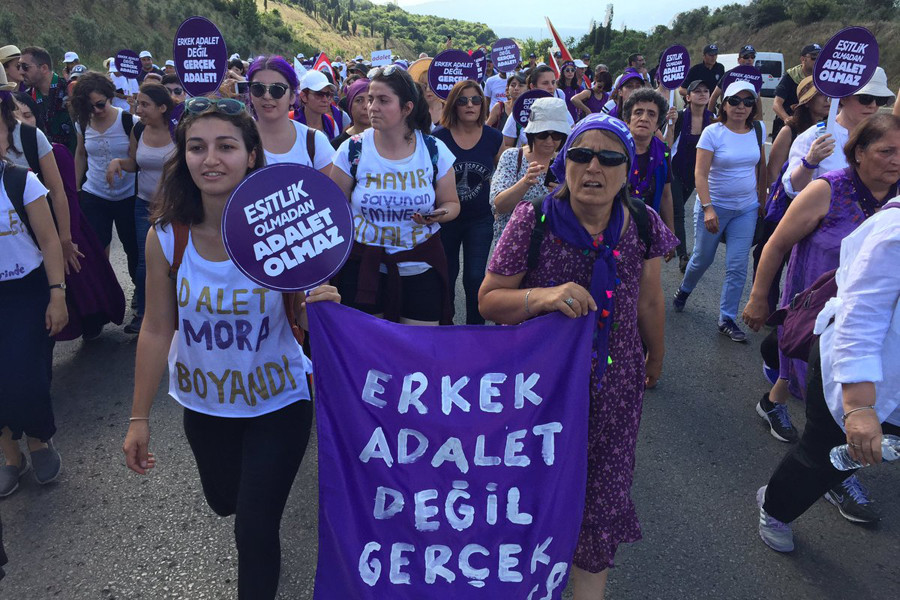 Adalet Yürüyüşü'nün 22. günü. 80 kadın örgütü 2008 yılında Gebze'de öldürülen Pippa Bacca'nın öldürüldüğü Gebze'den talepleriyle yürüyüşe katıldı. Türkülerle, sloganlarla kadınların talepleri...