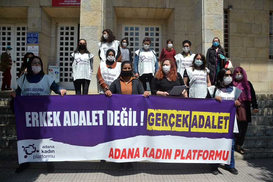 Bugün Adana’da kadınların yargılandığı 3 dava gerçekleşti. Adana Kadın Platformu, kadınların yargılandığı iki hakaret davası ve şiddet gördüğü eşi Hakan Özbek'i öldürdüğü iddiasıyla yargılanan Fikriye Özbek duruşması öncesinde basın açıklaması yaptı. Adliye önünde yapılan basın açıklamasında Fikriye Özbek ve tüm kadınlar için adalet talep edildi.