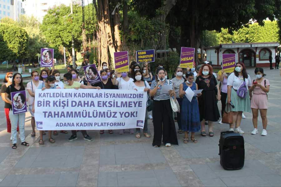 Adana Kadın Platformu son bir haftada gerçekleşen kadın cinayetlerine tepki göstermek için basın açıklaması düzenledi. Azra Gülendam ve Emine Gökkız ve bugün katledilen Elif Sinan için basın açıklaması yapan kadınlar Aleyna Çakır’ın ölümünün baş sorumlusu olan Ümit Can Uygun’un elini kolunu sallayarak gezip, Esra Hanuklu isimli kadının ölümü ile anılması karşısında isyan ettiler.