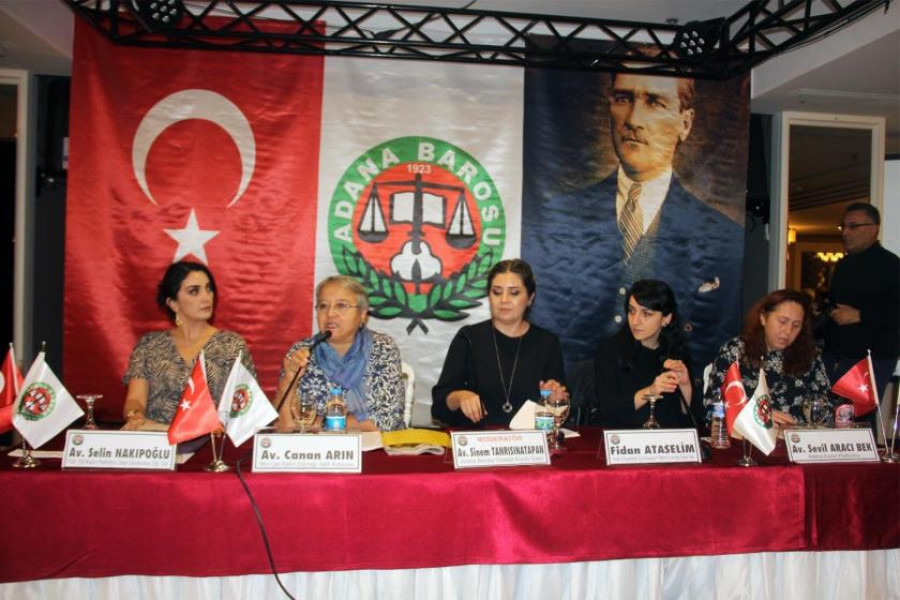 Adana Barosu “Kadınlar için Adalet” başlıklı panel düzenledi. Panele Adana Kadın Platformu adına Avukat Sevil Aracı, Mor Çatı Kadın Sığınağı Vakfı Kurucusu Avukat Canan Arın, Kadın Cinayetlerini Durduracağız Platformu İstanbul Temsilcisi Fidan Ataselim ve TCK 103 Kadın Platformundan Avukat Selin Nakıpoğlu konuşmacı olarak katıldı.