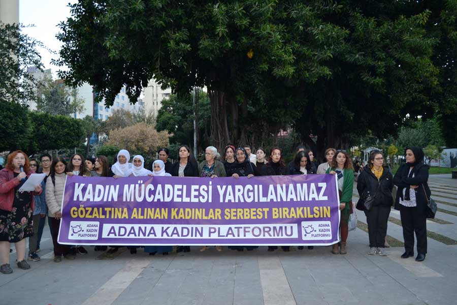 Adana Kadın Platformu üyesi kadınlar 25 Kasım eylemlerine yönelik polis şiddeti ve TJA üyesi 19 kadının gözaltına alınmasını protesto etti