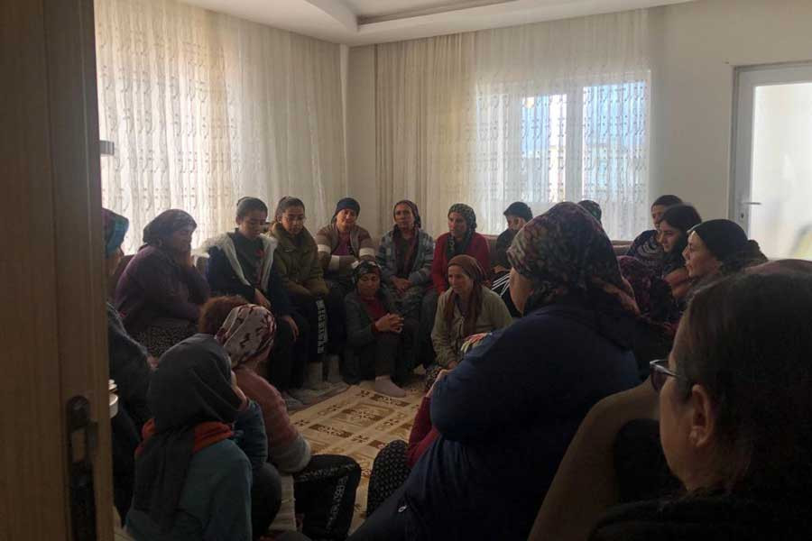 “Kız Kardeşlik Köprüsü ile Hayatı Yeniden Kuruyoruz” çağrımızla bir araya gelen Adıyamanlı elliden fazla depremzede kadın, depremin üzerinden geçen 37 günde yaşadıklarını konuştu. Kadınlar depremden sonraki ilk günden beri yalnız bırakıldıkları, devletin esamesinin dahi okunmadığı konularında hemfikirler. Yaşadıklarının çok ağır olduğunu anlatan kadınlar, bu zor günlerde yanlarında yalnızca gönüllülerin olduğunu, onların da kısıtlı imkanlarıyla ellerinden geleni yaptıklarını söyledi. Hasarlı evlerini bırakıp çadır kentlere gidemeyen ve bu nedenle evlerinin bahçesinde kendi imkanlarıyla yaptıkları çadırlarda kalan kadınlar, yapılan kısıtlı yardımların da sadece çadır kentlere yapıldığını anlattı. Dayanışmanın bugünlerde ellerinde kalan tek şey olduğunu belirten kadınlara buluşmanın ardından kadınlara Ekmek ve Gül’ün ülkenin dört bir yanından gönderdiği hijyen ürünleri dağıtıldı.