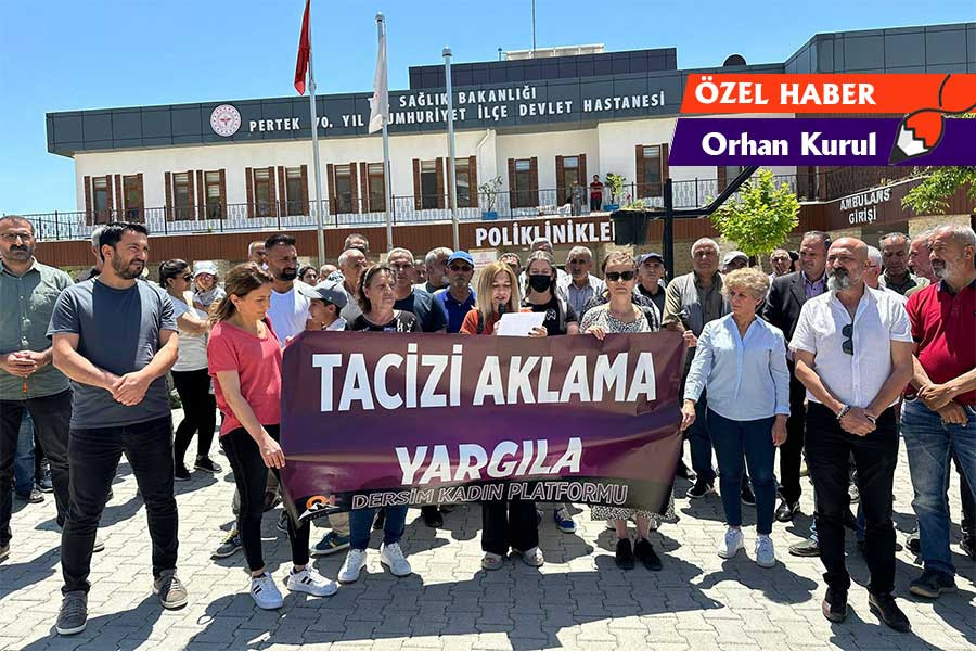 Dersim’in Pertek ilçesinde görev yapan doktor İ.H. geçtiğimiz yıl Pertek’te kadın hastasına ve hastanede çalışanına tacizde bulunduğu iddiasıyla tutuklanmıştı. Şikayetçilerin şikayetlerinden vazgeçmesi üzerine beraat eden doktor, taciz iddialarıyla gündeme geldiği hastanede tekrar göreve başladı. Hakkında 52 şikayet olan doktorun meslekten ihraç edilmesini isteyen vatandaşlar, kitle örgütleri ve kadın örgütleri önceki gün Pertek’te bir yürüyüş yaparak duruma tepki gösterdi.