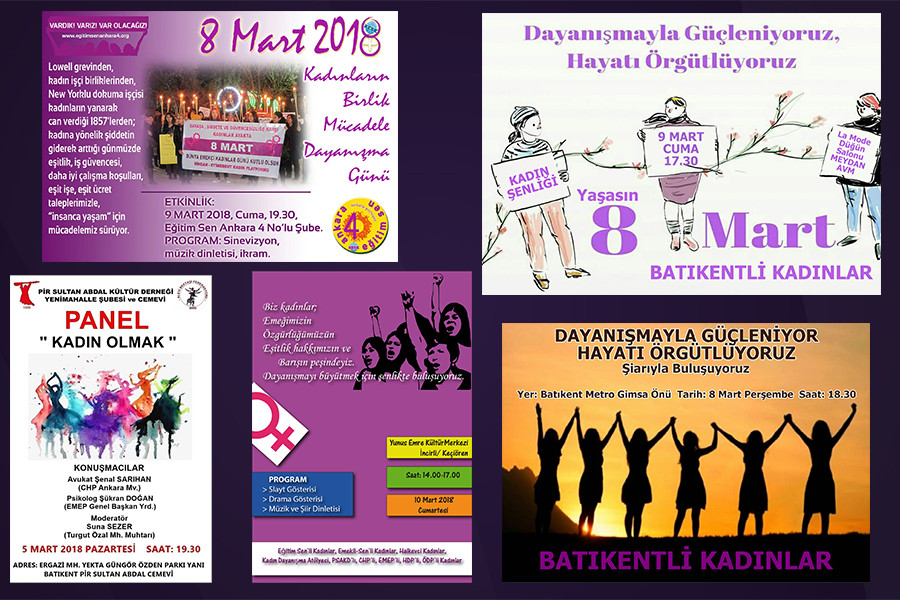 Mamak’ta kadınlar Kızkardeşim Dayanışma Derneği, Tuzluçayır Kadınları Dayanışma Derneği, Pir Sultan Abdal Kültür Derneği, Ana Fatma Cemevi, Eğitim-Sen 1 No’lu Şube, Demokratik Alevi Derneği Mamak Şube’nin de aralarında olduğu 18 Köy Derneği’ni birleştirdi. Ankara’nın diğer ilçelerinde farklı alanlarda mücadele yürüten kadınların da bu 8 Mart’ta ortak ve geniş katılımlı eylemler yapması, dayanışma ruhunu ön plana çıkarırken kadınların seslerinin daha da yükseleceğinin sinyallerini veriyor.