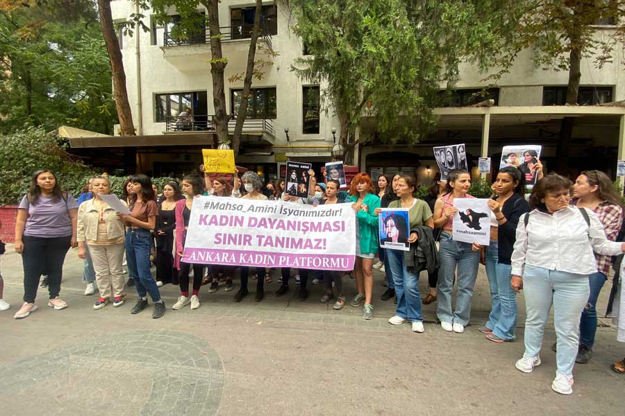 Ankara Kadın Platformu, İran’da ahlak polisi tarafından saçının bir kısmı göründüğü gerekçesiyle darp edilerek öldürülen Mahsa Amini için açıklamada yaptı. Platform adına konuşan Zeynep Ülger, İran’da bir kadının daha dayatılan sınırları reddettiği için devlet şiddeti ile öldürüldüğünü belirterek “Türkiye’den İranlı kadınların sesini yükseltiyoruz. Mahsa Amini’nin katili İran Molla rejimidir. Mahsa'nın katili erkek egemen sistemdir. Mahsa’nın ve İranlı kadınların mücadelesi hepimizin mücadelesidir” dedi. Polisin müdahale ettiği basın açıklaması “Yaşasın kadın dayanışması” sloganları ile bitti.