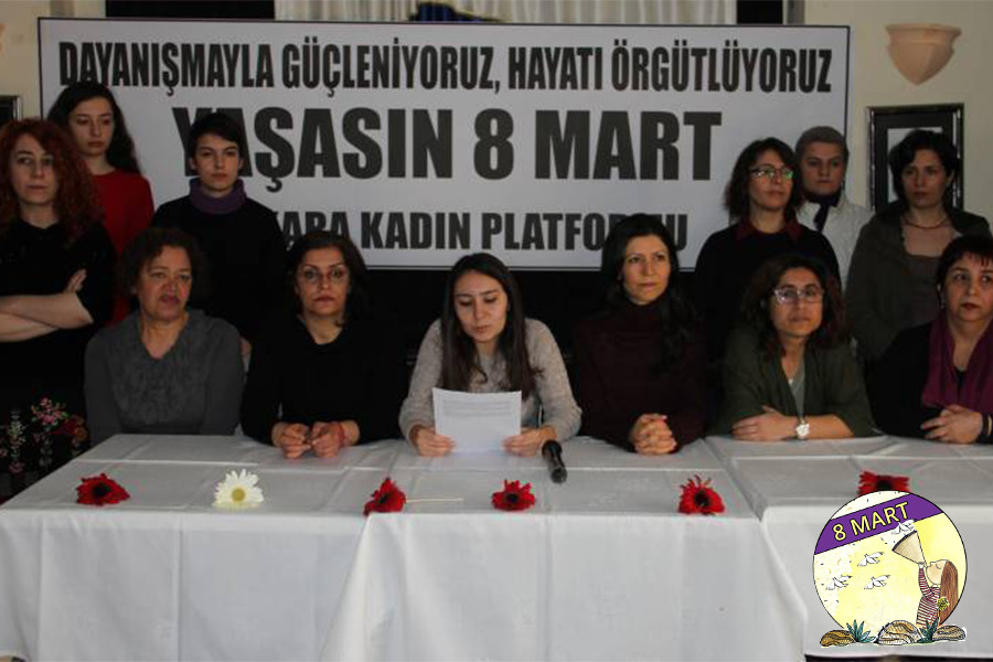 8 Mart’a az bir zaman kaldı. Pek çok ilde önümüzdeki hafta sonu gerçekleştirilecek 8 Mart eylemlerine çağrılar yapılıyor. Ankara Kadın Platformu da 4 Mart’ta yapacağı 8 Mart miting programını basın toplantısıyla açıkladı. Mülkiyeliler Birliğinde yapılan toplantıda Platform üyesi kadınlar, tüm kadınları 4 Mart’ta alanda olmaya çağırdı.