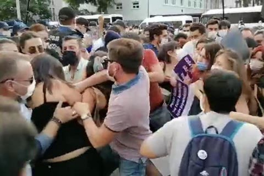 Ankara Kadın Platformunun İstanbul Sözleşmesi ile ilgili yapmak istediği açıklama polis tarafından engellendi, çok sayıda kadın gözaltına alındı.
