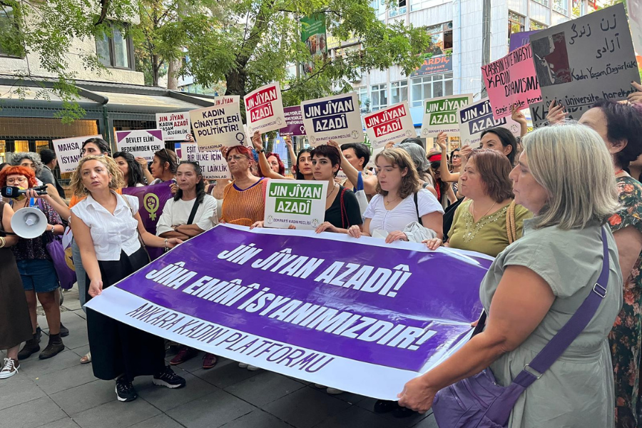 Ankara Kadın Platformu, İran’da Mahsa Jina Amini’nin 16 Eylül 2022’de ahlak polisi tarafından öldürülmesinin yıldönümünde sokaktaydı. Platform yaptığı açıklamada, “İktidarınız kadınların örgütlenmesine ve güçlenmesine ne kadar saldırırsa saldırsın; şeriata karşı direnen İranlı kadınlar gibi bizler de sizin dinci-faşist rejiminize karşı örgütlenmeye devam edeceğiz” dedi.