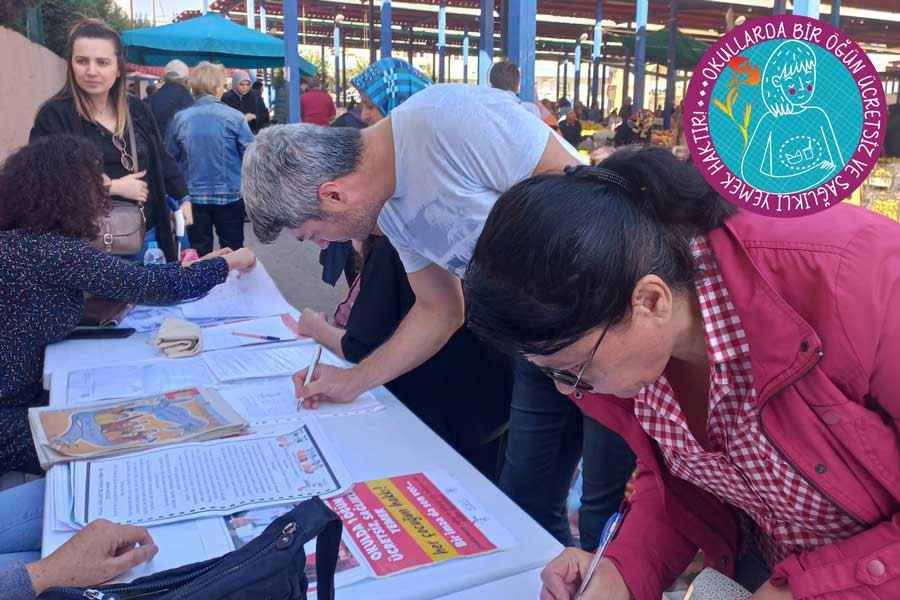 Çok sesli bir imza kampanyasını tamamlamış bulunduk. Ardından bir ilkokul önünde basın açıklaması yapıldı. İmzaların sırasıyla, MEB’e, belediyelere, kaymakamlığa verileceği duyuruldu. Yoksulun gözünde, aklında umut, beklemeye durdu… Kulakları gelecek güzel haberde. “Verecekler mi çocuklara yemek? Ya verirlerse!” “Bugün de beslenmeye ne koyacağım!” derdine düşmeden, çocuklarının eğitimini düşündükleri, derslerine kafa yordukları ebeveynli günlere kavuşmak dileğiyle! “Anne biliyor musun, bugün okulda hangi güzel yemeği yedim?” diye çocukların eve mutlu döndükleri, okula heyecanla, daha bir hevesle gittikleri bir eğitim sistemi neden mümkün olmasın?