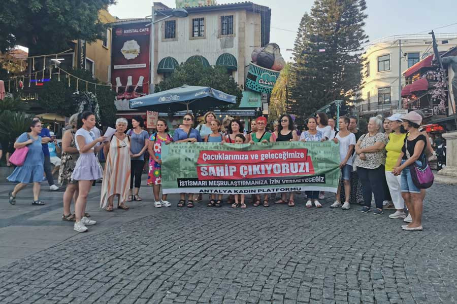 Antalya Kadın Platformunun çağrısıyla kadınlar, çocukları tarikatlara mahkum eden düzene, yargının sessizliğine, çocuk istismarı dosyasının kapatılmış olmasına, cinsel istismara karşı buluştu.
