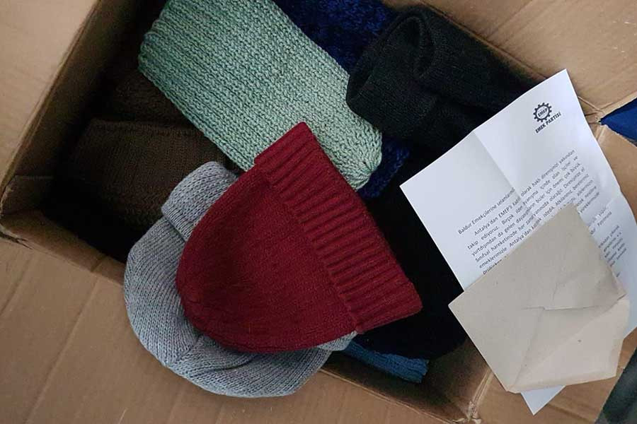 Baldur işçileri de dayanışmanın önemine vurgu yaptı. Atkı, bere ve yelekler ile gönderilen mektupları da okuyan işçiler, emeği geçenlere de teşekkür etti.