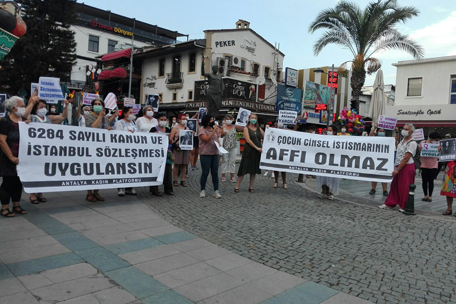 Antalya Kadın Platformu üyesi kadınlar Attalos Meydanı'nda bir araya gelerek bir basın açıklaması gerçekleştirdi. Bir araya gelen kadınlar İstanbul Sözleşmesi'nin etkin uygulanmasını istedi.
