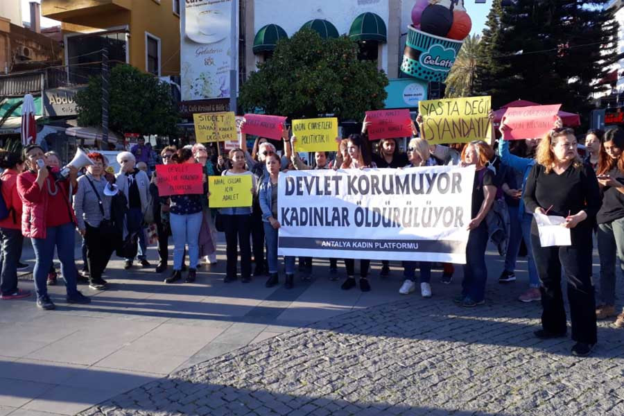 Antalya Kadın Platformundan kadınlar, boşanmak istediği eşi tarafından öldürülen Nihal Işıldar’ın evinin önünde buluşarak basın açıklaması gerçekleştirdi. Nihal’in kapısı ‘adalet’ yazılı siyah çelenk bırakan kadınlara Nihal’in komşuları da destek verdi. Açıklamada “Nihal daha önce katili Özcan Işıldar’ı defalarca şikayet etmişti. Bir şey yapılmadı. Nihal’in ölümü göz göre göre geldi, devlet bir kadını daha koruyamadı” dendi. Açıklama sonrası kadınlara kadına yönelik şiddete dikkat çeken broşürler dağıtıldı.