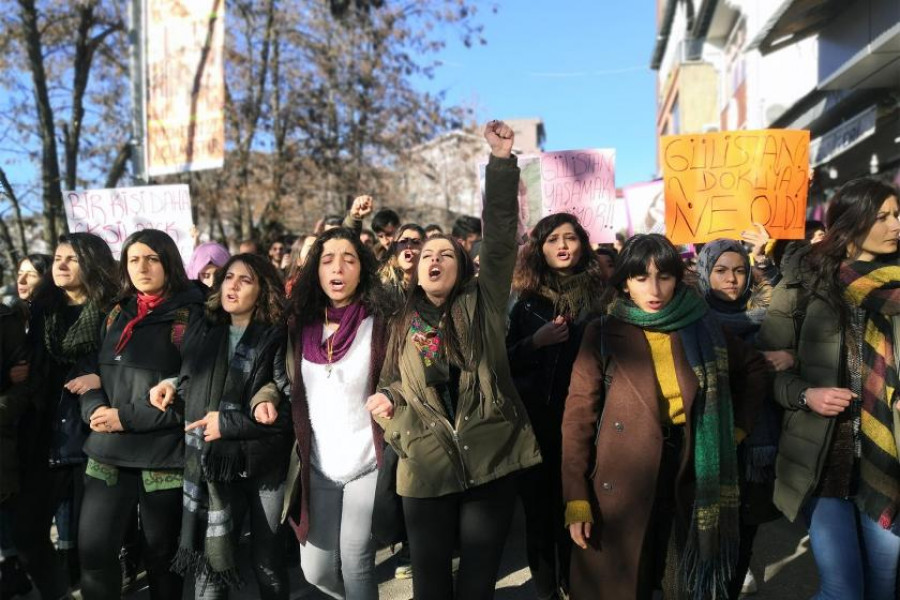 Dersim’de 5 Ocak’tan beri haber alınamayan üniversite öğrencisi Gülistan Doku’nun arkadaşları, KYK öğrenci yurdunda “Dersim uyuma Gülistan’a sahip çık” sloganlarıyla eylem yaptı.