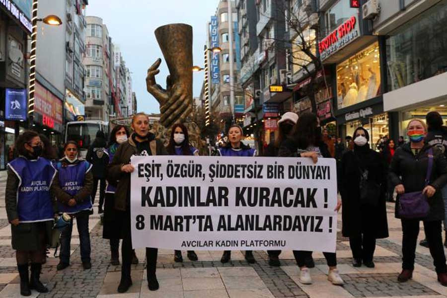 Avcılar Kadın Platformu, “Şiddete yoksulluğa karşı isyanda, özgürlük için sokaktayız” şiarıyla Avcılar’da bulunan Deprem Anıtı önünde açıklama gerçekleştirdi. Açıklama öncesi cadde çok sayıda polis ve gözaltı aracıyla kapatıldı. “Eşit özgür şiddetsiz bir dünyayı kadınlar kuracak! 8 Mart’ta alanlardayız” pankartının açıldığı açıklamada sık sık, “Sokakları da meydanları da terk etmiyoruz”, “Görünmeyen emek sesini yükselt”, “Susma haykır translar vardır”, “Kadın cinayetleri politiktir”, “Yaşasın 8 Mart”, “Kadınlar birlikte güçlü”, “Savaşa hayır barış hemen şimdi” sloganları atıldı.