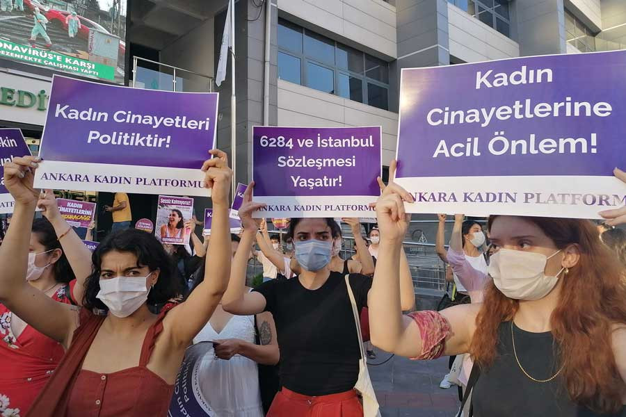 “İstanbul Sözleşmesi yaşatır” ve “Musa Orhan tutuklansın” yazılı pankartları taşıyan kadınlar, sık sık “Erkek Adalet Değil Gerçek Adalet”, “Kadınlar Birlikte Güçlü”, “Susmuyoruz Korkmuyoruz İtaat Etmiyoruz” sloganları attı.