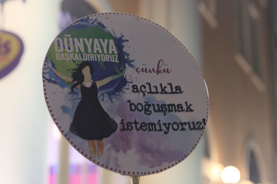 Tok konuşmasında kadınların faturalarını ödemek için kendinden ödün vererek; ek iş yaparak, mesaiye kalarak yıprandıklarını, eşleriyle ve çocuklarıyla vakit geçiremediklerini, kendilerine hiç zaman ayıramadıklarını, temel ihtiyaçlarını karşılayamadıklarını, ev kirasını ödeyemediklerini, ekmek kuyruklarında mesai harcadıklarını aktardı: “Yapılan zamlarla ekonomik krizin faturası emekçilere ödetilmek isteniyor. Ekonomik krizi, yoksulluğu, yapılan zamlarla, üç haneli sayılara çıkan enflasyonla en çok emekçiler ve en çok da kadınlar yaşıyor. Bütün bunların üstesinden gelmek için, eşit işe eşit ücret için, patronun tacizine, şiddete, kadın cinayetlerine dur demek, insanca yaşam hakkını savunmak için el ele vererek, örgütlenerek, gücümüzü birleştirerek birlikte mücadele etmeliyiz. Eşit, özgür, şiddetsiz bir yaşam bizimle mümkün!”