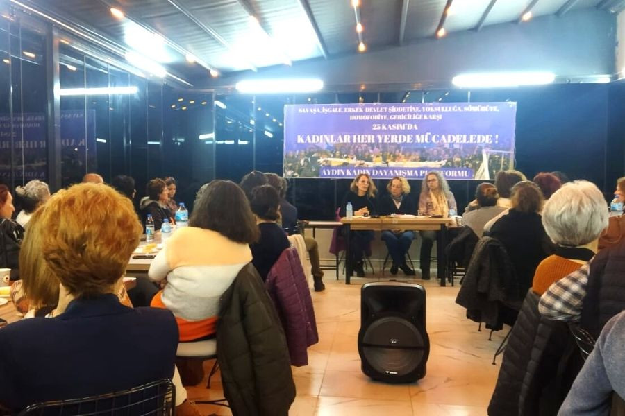 Aydın Kadın Dayanışma Platformu 25 Kasım Kadına Yönelik Şiddete Karşı Uluslararası Mücadele ve Dayanışma Günü kapsamında Ekmek ve Gül Yazı İşleri üyesi Nuray Öztürk ve Eşik Platformu Sözcüsü Hülya Gülbahar'ın katılımıyla panel gerçekleştirdi.