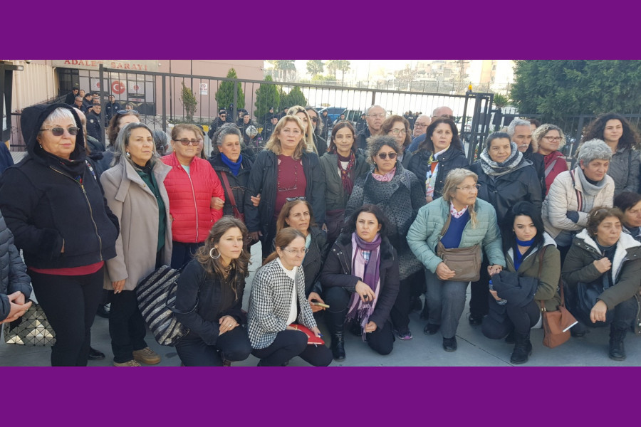 Söke 2. Ağır Ceza Mahkemesi'nde yapılan duruşmaya Kuşadası, Söke ve Didim'den kadın örgütleri de katılım gösterdi.
