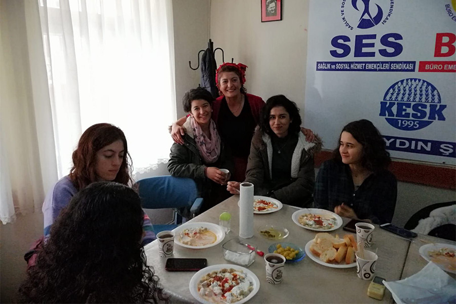 Aydın Kadın Dayanışma Platformu 8 Mart Dünya Emekçi Kadınlar Günü kapsamında, Sağlık ve Sosyal Hizmet Emekçileri Sendikasında ihraç edilen kadın için düzenledikleri dayanışma etkinliğinde buluştu. Kadınlar “Krize, işsizliğe, şiddete, eşitsizliğe karşı gücümüz birliğimiz ve dayanışmamız” diyerek 8 Mart’a çağrı yaptılar.