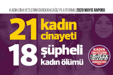 Kadın Cinayetlerini Durduracağız Platformu, mayıs 2020 kadın cinayetleri raporunu paylaştı. Mayıs ayında 21 kadın öldürülürken, 18 şüpheli kadın ölümü gerçekleşti.