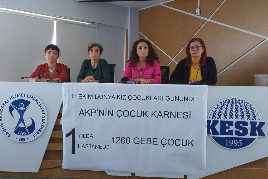 KESK’e bağlı Sağlık ve Sosyal Hizmet Emekçiler Sendikası (SES), Dünya Kız Çocukları Günü’nde AKP’nin çocuk karnesini açıkladı. SES Genel Merkezinde yapılan basın toplantısında konuşan SES Eş Genel Başkanı Gönül Erden, Sağlık Bakanlığının soruşturma raporunu değerlendirdi. İstanbul’da bulunan Kanuni Sultan Süleyman Eğitim ve Araştırma Hastanesine 2016 yılında 1260 hamile kız çocuğunun başvurduğunu söyleyen Erden, “Burada söz konusu olan her bir rakam candır, istismara uğramış, kendi çocukken gebe bırakılmış çocuklar, onların yaşamları vardır” dedi.