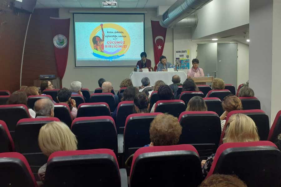 Panelde ilk sözü alan Avukat Birgül Değimenci, uluslararası alanda kadınlara yönelik eşitliğin sağlanması amacıyla sözleşmelere değindi. Kadınlara yönelik ayrımcılığın belgelenmesi amacıyla CEDAV sözleşmesinden bahseden Değirmenci, “Bu çerçevede kadınlara yönelik ayrımcılıkla mücadelede gündeme gelmişti ama kadına yönelik şiddet her geçen gün devam ediyordu. Bunu da görünür kılınması ve bununla ilgili örgütlü mücadele için ilk kez bildirge yayınlandı. Şiddet tanımı olan bildirgede yapılması zorunluluk olmayan bir bildirgeydi ve yine yeterli değildi. Kadın örgütleri Türkiye’nin de dahil olduğu çalışmalarını sürdürdü ve sonunda İstanbul Sözleşmesi imzalandı ki Türkiye ilk imzalayandı. 2014 tarihinde sözleşme yürürlüğe girdi ve anayasa niteliğinde bir sözleşme oldu” dedi.İstanbul Sözleşmesi’yle ilgili bilgi veren Değirmenci, son yıllarda yoğunlaşan muhafazakarlaşma eğilimi ile hükümetin İstanbul Sözleşmesi’ni uygulamaktan caydığını belirtti. Toplumsal cinsiyet eğitiminin ortadan kaldırılarak üniversitelerde toplumsal cinsiyet eşitliği kavramı yerine toplumsal cinsiyet adaleti getirildiğini belirten Değirmenci, “Kadın ismi resmi kurumlardan kaldırılıp aile içinde kadın politikaları eritildi. Diyanet tarafından öyle fetvalar veriliyor ki 9 yaşında kız çocukları ile evlenilebileceği belirtilirken, kadın ile erkeğin eşit olduğunu söylemek bile ahlaksız olarak tarif ediliyor” dedi.