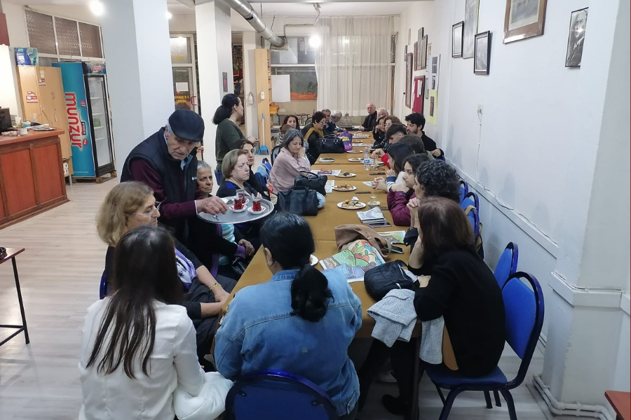 Balçova Emek ve Gül Kadın Dayanışma Grubu çağrısıyla Balçova Tuncelililer Derneğinde bir araya gelen kadınlar, kadına yönelik şiddeti ve buna karşı nasıl mücadele edilmesi üzerine sohbet gerçekleştirdi.