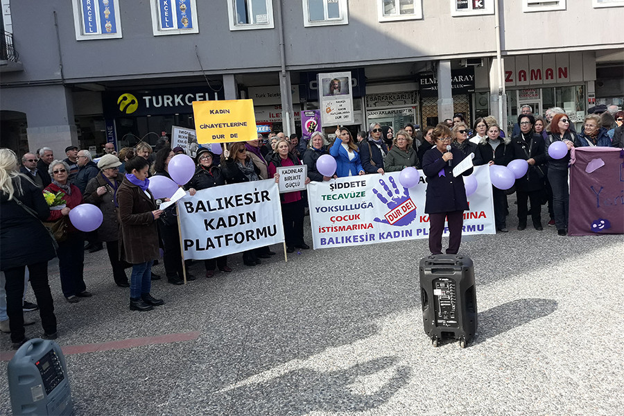Alihikmetpaşa Meydanı’nda kitlesel bir basın açıklaması yapan Balıkesir Kadın Platformu kadına yönelik şiddete karşı birlikte mücadele çağrısı yaptı. adına konuşan Ayşe Yılmaz, 25 Kasım Kadına Yönelik Şiddete Karşı Uluslararası Mücadele ve Dayanışam Günü’nün Mirabel kardeşlerin 58 yıl önce katledilişlerinden günümüze gelinceye dek tüm toplumlar içerisinde çeşitlilik ve artan bir saldırıya dönüştüğünü vurguladı. Ülkemizde kadınların 25 Kasım’a daha zorlu koşullarda girdiklerine dikkat çeken Yılmaz, yaşanan krizin faturasını da en çok kadınların ödediğini ve yaşanan işsizlik, yoksulluk ve açlığın kadınlara daha çok şiddet ve istismar olarak yansıdığını sözlerine ekledi.