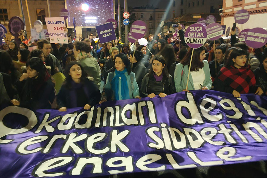 Ülkemizde kadın cinayetlerinin hızla arttığı bir dönemde, son olarak birkaç gün önce tanımadığı bir cezaevi firarisi tarafından öldürülen Ceren Özdemir’in katledilmesinin üzüntüsünü ve dehşetini yaşadığımız bir süreçte, kadına karşı şiddeti protesto etmek amacıyla, kadınlar tarafından İstanbul’da yapılan barışçıl bir gösteriye güvenlik güçlerince yapılan müdahaleyi kınıyoruz” denilen açıklamada, şiddet içeren bu müdahalenin ve gözaltıların toplantı ve gösteri yürüyüşü hakkının engellenmesi olduğu belirtildi. Açıklama şöyle devam etti: “Kadın cinayetlerine karşı yaşam hakkını savunmak, şiddeti protesto etmek, sorumluları göreve çağırmak demokratik bir hakkın kullanılmasıdır.