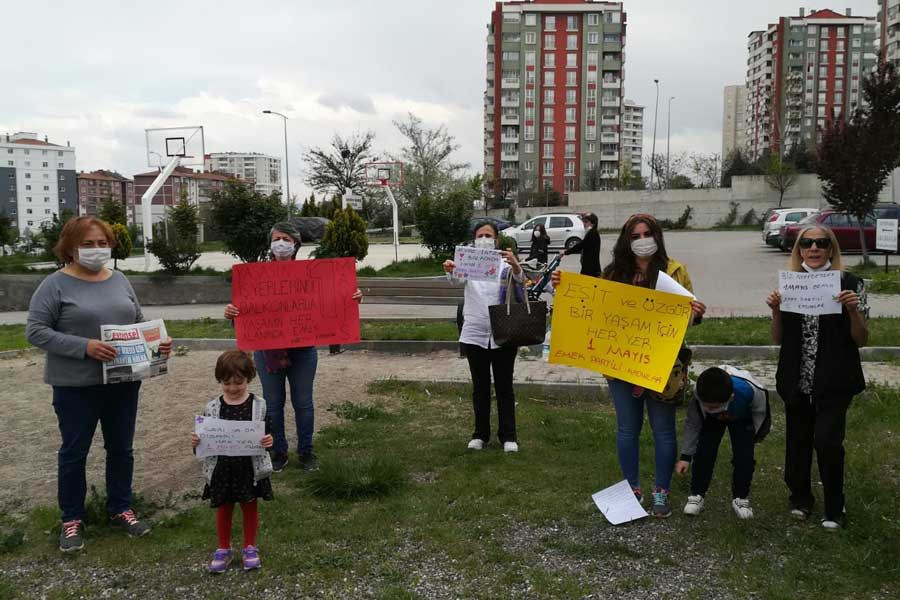 Ankara’nın Yenimahalle ilçesi Batıkent semti Kardelen Mahallesi Umuda Bakış sitesinde yaşayan kadınlar 1 Mayıs’ı kutladı. Marş ve sloganlarla yapılan kutlamada, site sakinleri adına açıklamayı Bahar Polat yaptı. Bu yıl koronavirüs nedeniyle 1 Mayıs’ta alanlarda olamadıklarını dile getiren Polat, bulundukları her yeri 1 Mayıs alanına çevirmeye çalıştıklarını söyledi. Polat, eşitsizliğin, şiddetin ve sömürünün sürdüğü bir düzen için değil, insanca yaşamak için gerçek tedbirlerin uygulanmasını istediklerini dile getirdi. Bu 1 Mayıs’taki taleplerini de sıralayan Polat, zorunlu olmayan alanlardaki üretimin durdurulmasını, işçilere ücretli izin verilmesini ve herkes için ulaşılabilir ve ücretsiz sağlık hizmeti sağlanmasını istedi.