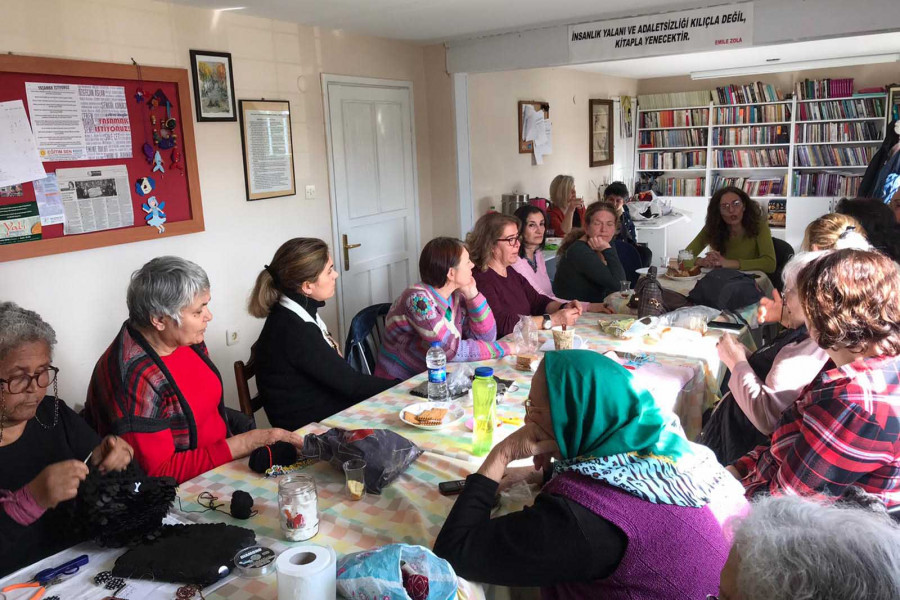 Söyleşi öncesi kısa bir selamlama konuşması yapan dernek başkanı Nefise Selçuk, İdlib saldırıları sonrası planladıkları büyük buluşmayı 12 Mart tarihine ertelediklerini belirterek, "Yine de yan yana gelelim sorunlarımızı ve bu sorunlara karşı daha fazla nasıl yan yana geleceğimizi konuşalım, 8 Mart’ın bu mücadeledeki önemini paylaşalım istedik" dedi. Ardından söz alan Nuray Öztürk, kadın emeği sömürüsü ve krizin buna etkileri, 2020 bütçesinden işçi ve emekçilere ayrılan pay, savaş politikaları ve kadınlara etkileri, 8 Mart’ın önemi üzerine bir konuşma yaptı.