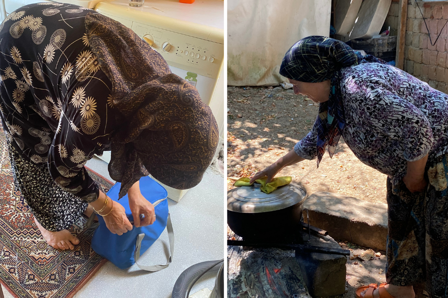 Sabah saatlerinde mahalleye ulaştığımızda ilk dikkatimizi çeken, evlerin önünde yakılan küçük ateşler oldu. Kadınlar çay demlemeye çalışıyor, yemek pişiriliyor. Mahalleli, buzdolabı çalışmadığı için gıdalarını termos çantalarda ya da ıslattıkları bezlerin altında saklıyor. Bir komşudan gelen çayla kahvaltı yapan aileler var.