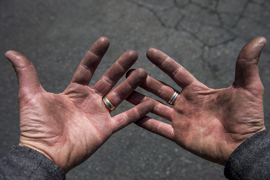 Bir metal işçisi kadının elleri