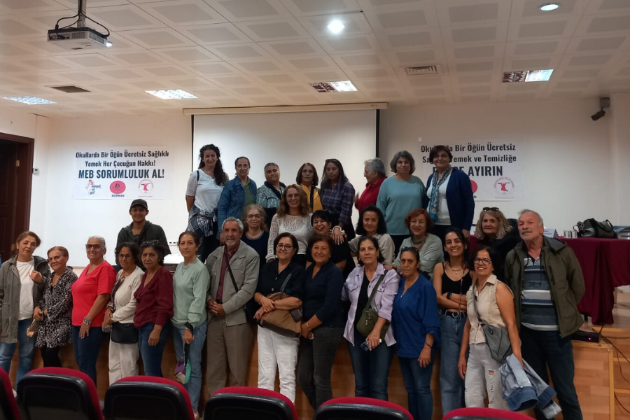 Bornova’da Ekmek ve Gül İzmir, Bornova Kadın Dayanışma Derneği, Pirsultan Abdal Kültür Derneği Bornova Kadın Meclisi, “Okullarda hijyen ve beslenme sorunu; Bir Öğün Ücretsiz Yemek ve Temiz Okul Mücadelesi” başlıklı bir söyleşi düzenlendi. İZBB Bornova Kültür Merkezinde gerçekleşen söyleşide 9 Eylül Üniversitesi Halk Sağlığı Ana Bilim Dalı akademisyenlerinden Prof. Türkan Günay, Rehberlik ve Psikolojik Danışman, Eğitimci Reyhan Kaygısız, Ekmek ve Gül adına ise yazı işleri üyemiz Nuray Öztürk sunum yaptı.