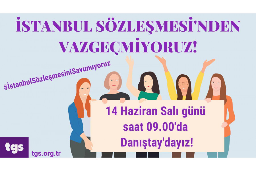 TGS Kadın ve LGBTİ+ Komisyonu İstanbul Sözleşmesi'nin feshine ilişkin Cumhurbaşkanı kararının iptali için Danıştay’da açtığı davanın bugün görülecek duruşmasına 1Bir erkek şiddet haberi daha yapmamak için, İstanbul Sözleşmesi'nden vazgeçmiyoruz" diyerek gazetecilere çağrı yapıyor.