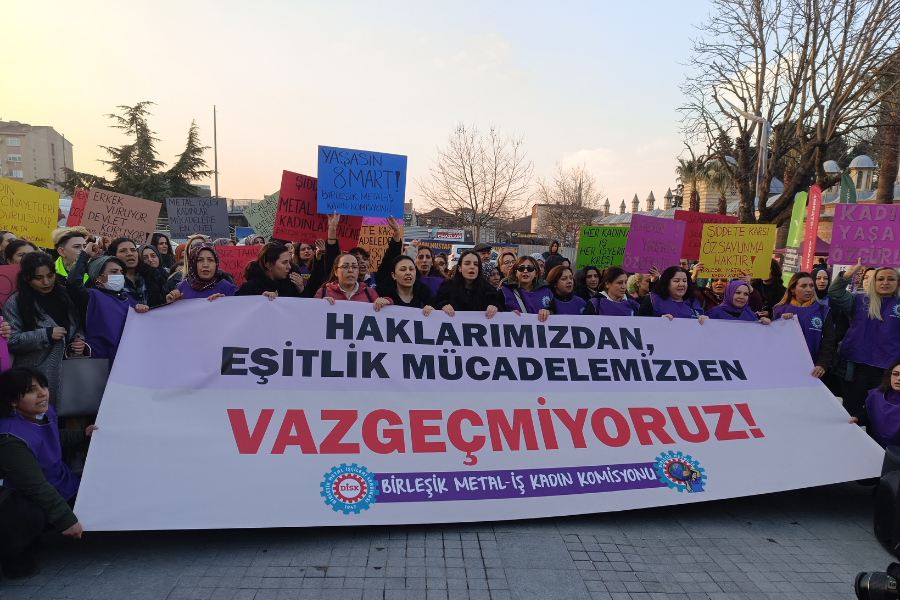 Birleşik Metal-İş Kadın Komisyonu, 8 Mart öncesi talepleriyle yan yana geldi. Gebze Kent Meydanında gerçekleştirilen buluşmada metal işçisi kadınlar "Yaşasın 8 Mart", "Kadın yaşam özgürlük" ve "Yaşasın kadın dayanışması" sloganları attı. Kadınların eylemine Emek Partisi (EMEP) Kocaeli Büyükşehir Belediye Başkan Adayı Arzu Erkan da destek verdi.