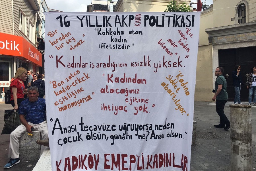 Sonuçta 16 yıllık iktidarı boyunca kadına evde kocanın karısı, çocukların anası, anne babanın kızı-gelini rolü biçen AKP hükümeti bu görev ve rolün benimsenmesi zorunluluğunu ve bunun dışında yaşanan bir yaşamın makbul olmadığı algısını toplumun her kesimine benimsetmeye çalışıyor. Bu benimsetme-kanıksatma durumu çevremizde kadınlar adına zırvalayan erkekleri de çoğaltıyor. AKP’nin politikalarının zihinde oluşturdukları birçok vesile ile sözcüklere dökülüyor, dile geliyor. Kadınlar için verilen her hakkın “gereksizliği, fazlalığı” bir biçimde ifade ediliyor ve kadınlara “adamsız” bir yaşam da çok görülüyor.